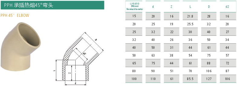 PPH承插热熔45°弯头