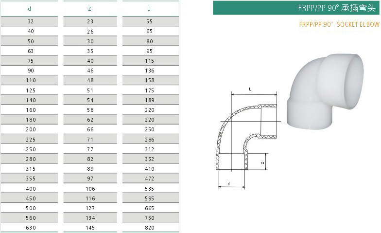 FRPP PP90°承插弯头