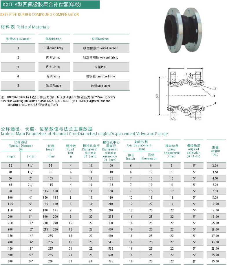 KXTF-A型四氟橡胶复合补偿器(单鼓)