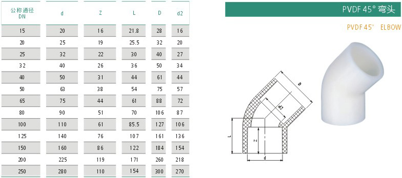 PVDF45°弯头